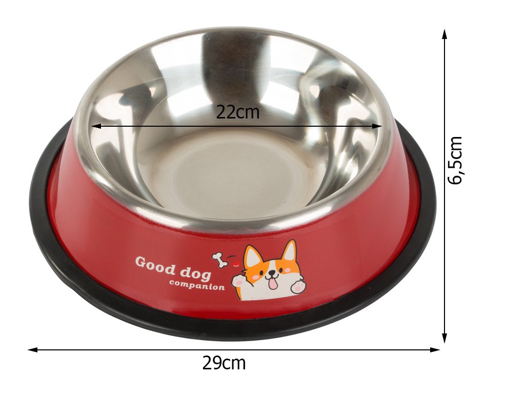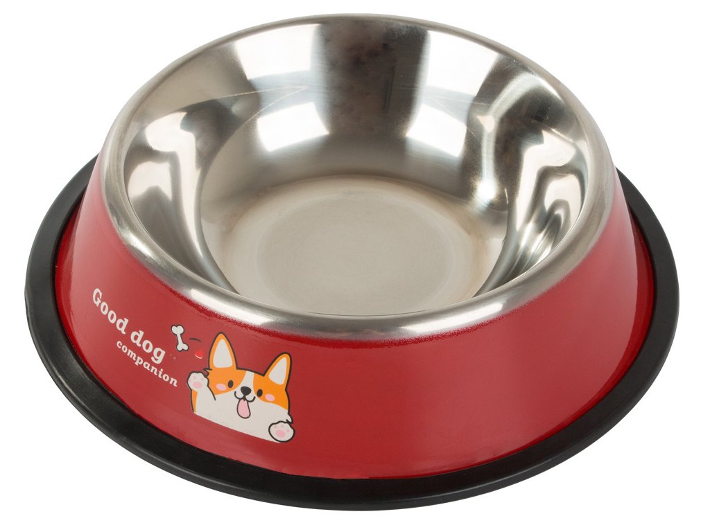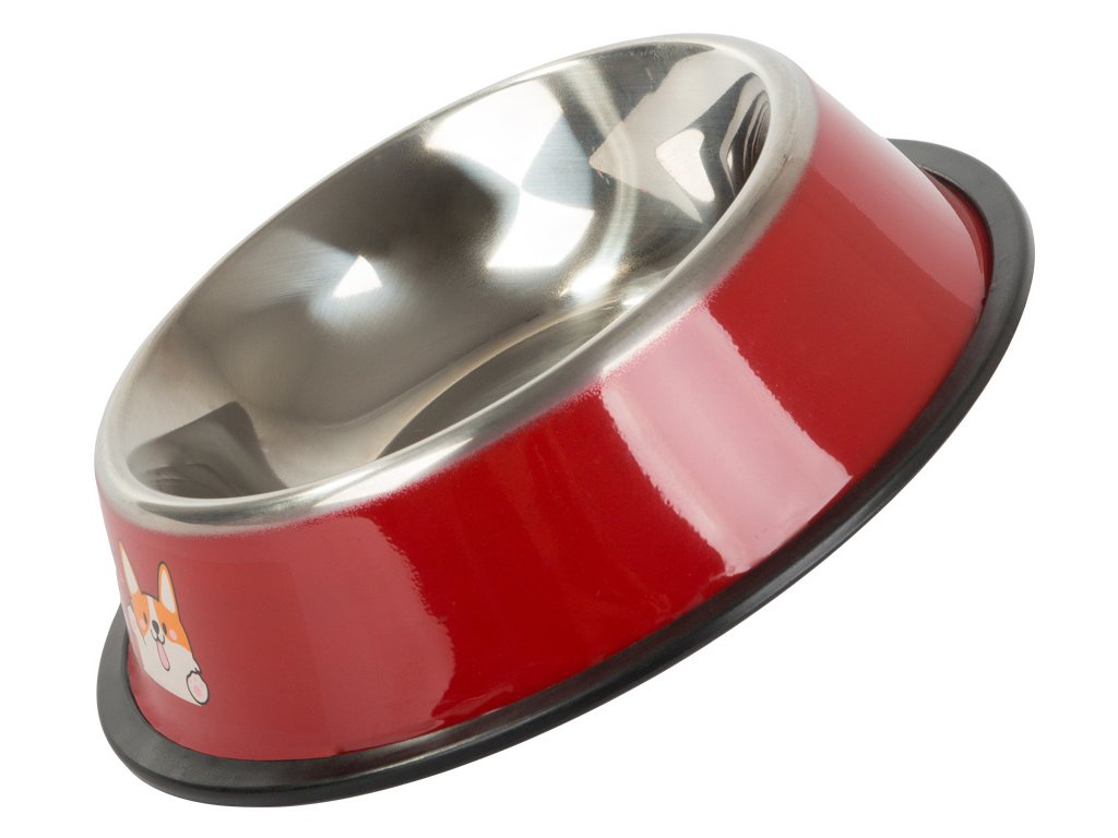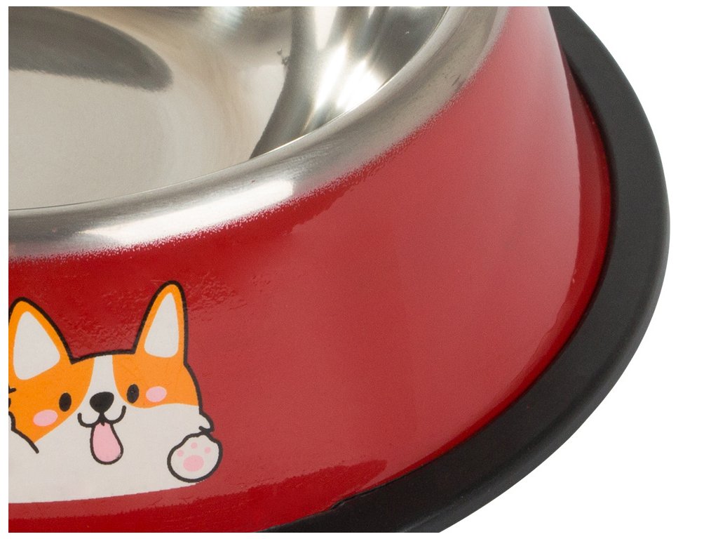 Je vyrobena z nerezové oceli a má protiskluzovou gumu, která zabraňuje pohybu misky s krmivem.