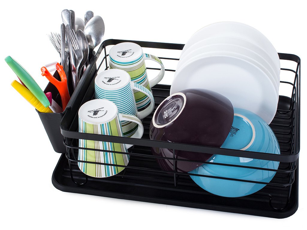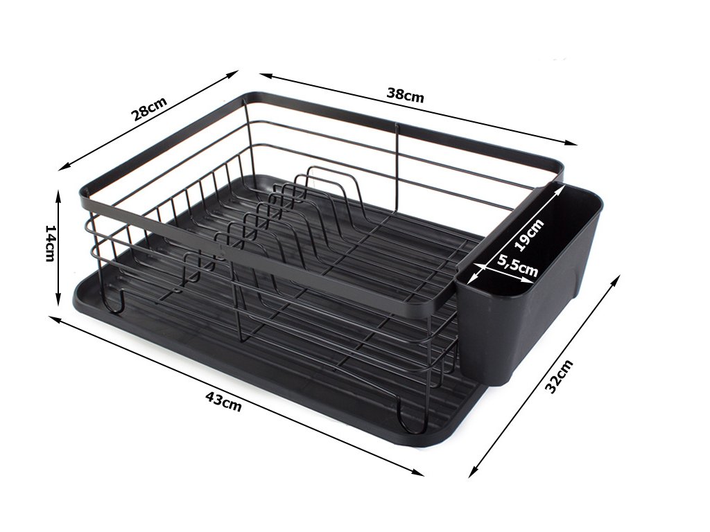 Kuchyňský sušák je vyroben z vysoce kvalitního kovu s práškovým nástřikem Je odolný proti poškození a působení vlhkosti vznikající při skladování mokrého nádobí.