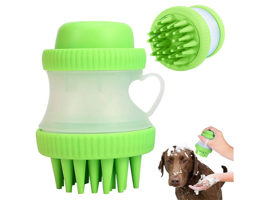 Silikonový kartáč na mytí psů s dávkovačem tekutého mýdla